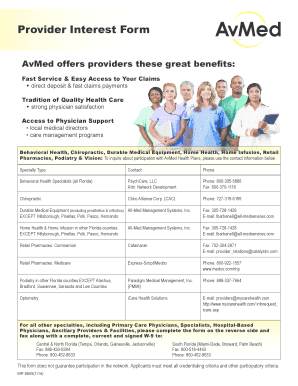 Fillable Online Avmed Provider Interest Form Avmed Avmed Fax Email Print Pdffiller